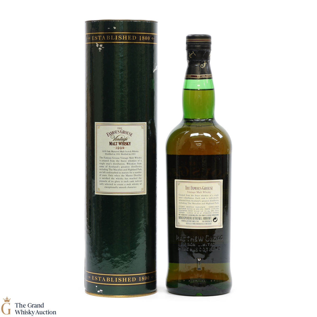 This is a bottling of Famous Grouse - 1992 Vintage, which was released following the success of the 1989 vintage. This vatted malt from Famous Grouse includes Highland Park and Macallan.