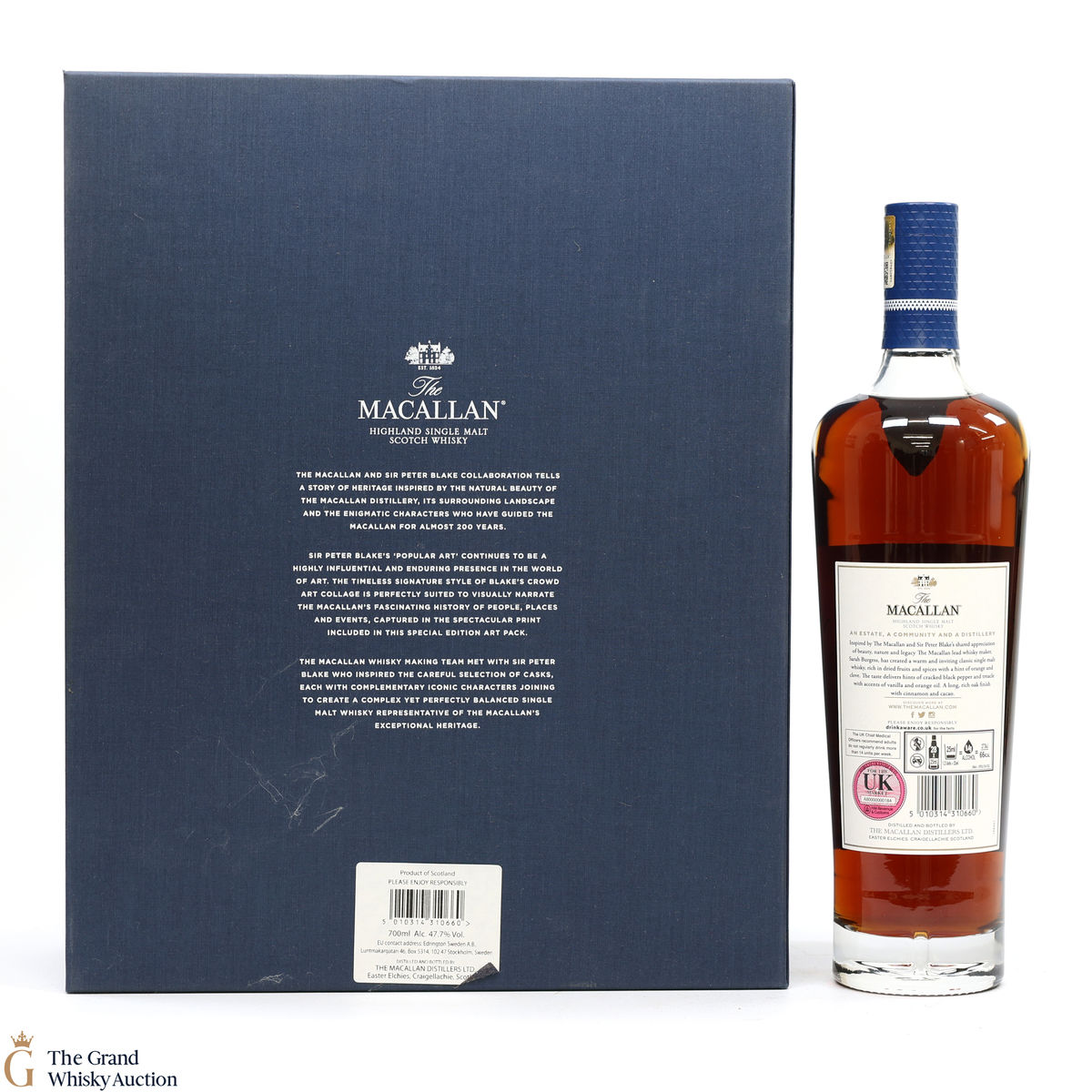 Part of The Anecdotes of Ages Collection, this is an extraordinary art and whisky collaboration with Sir Peter Blake. Being the third collaboration between the Macallan Distillery and Sir Peter Blake, this single malt was created to commemorate Sir Peter Blake's visit to The Macallan Estate. An Estate, a Community and a Distillery tells the story of some of the colourful characters from the distilleries' past and present and features a label designed by Sir Peter Blake.