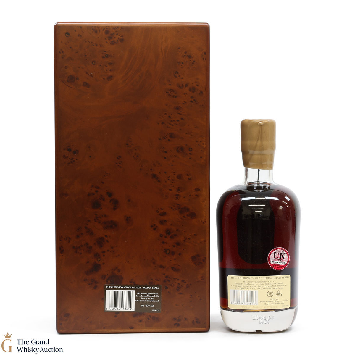 Due to the various ages of bottles and their seals, the condition of liquid is at the buyer's discretion and no claim can be lodged against failure/leakage in transit. Loss and breakage cover is available at 3% of the hammer price as standard. If the lot is not insured, no claim can be lodged against the courier or The Grand Whisky Auction for breakage or loss in transit.