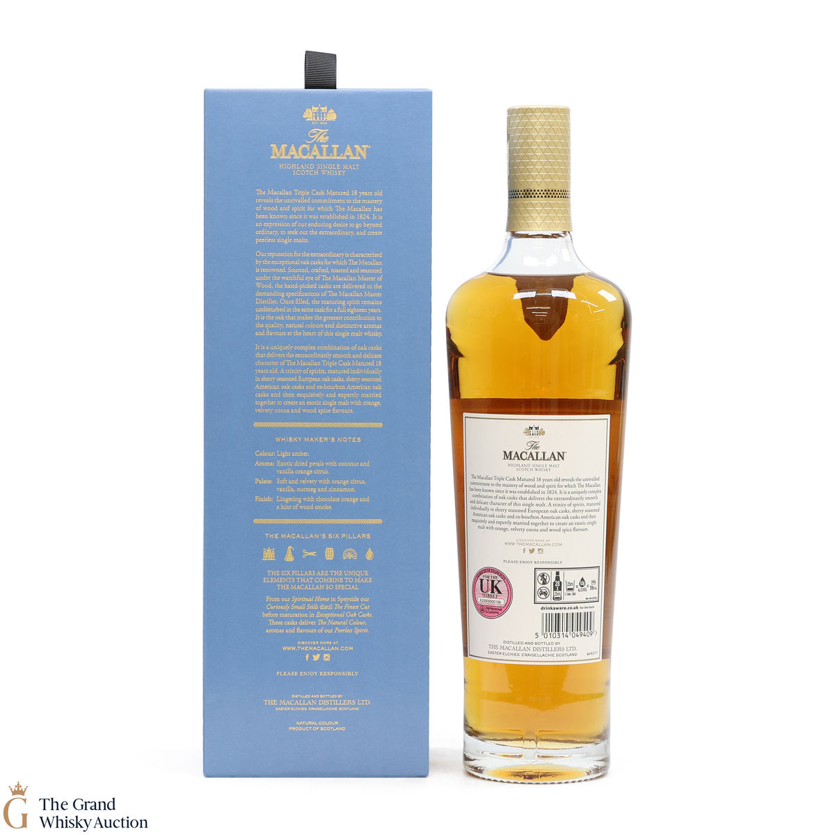 This 18-year-old Macallan single malt was released in 2018 and sits at the top of the Triple Cask range (which replaced the Fine Oak range). The whisky was matured in a combination of European sherry seasoned casks, American sherry seasoned casks and American ex-bourbon casks. This expression boasts bountiful notes of vanilla, dried fruit and woody spice.