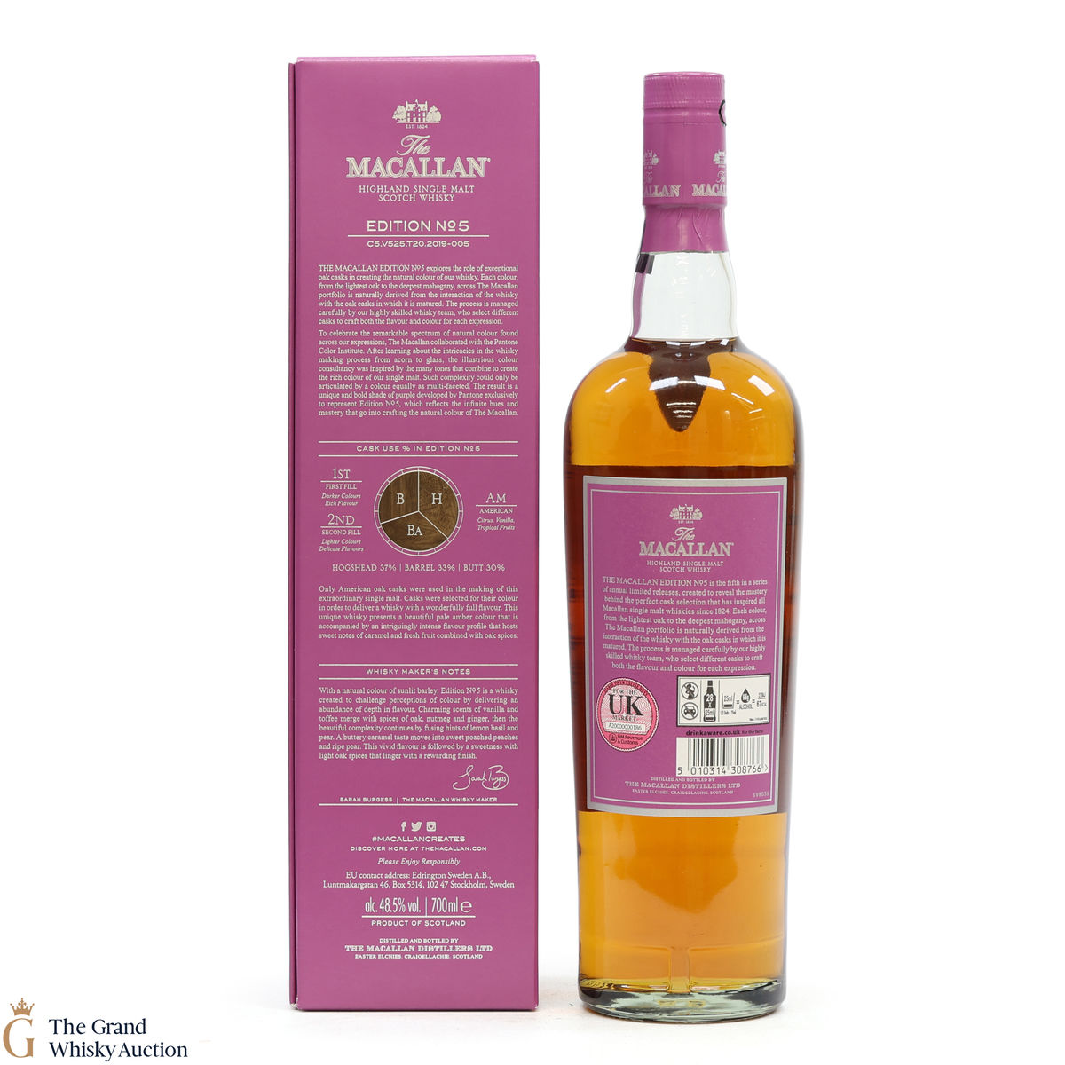 The fifth release in the Edition Series from The Macallan, The Macallan Edition No. 5 celebrates The Macallan’s extensive natural colour spectrum and the intricate whisky-making process, in partnership with masters at the Pantone Color Institute™ to create a unique shade of purple that features on the packaging.