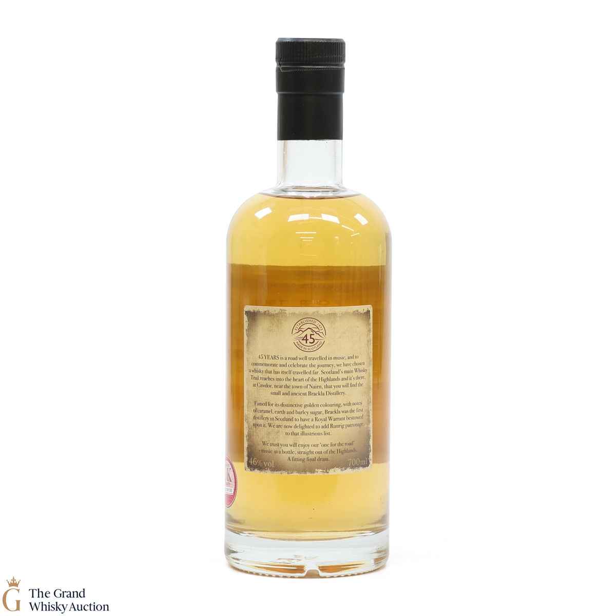 Distilled at the Royal Brackla Distillery, this single malt was bottled to celebrate 45 years of Runrig. The 'One for the Road' is a fitting final dram for the famous band.