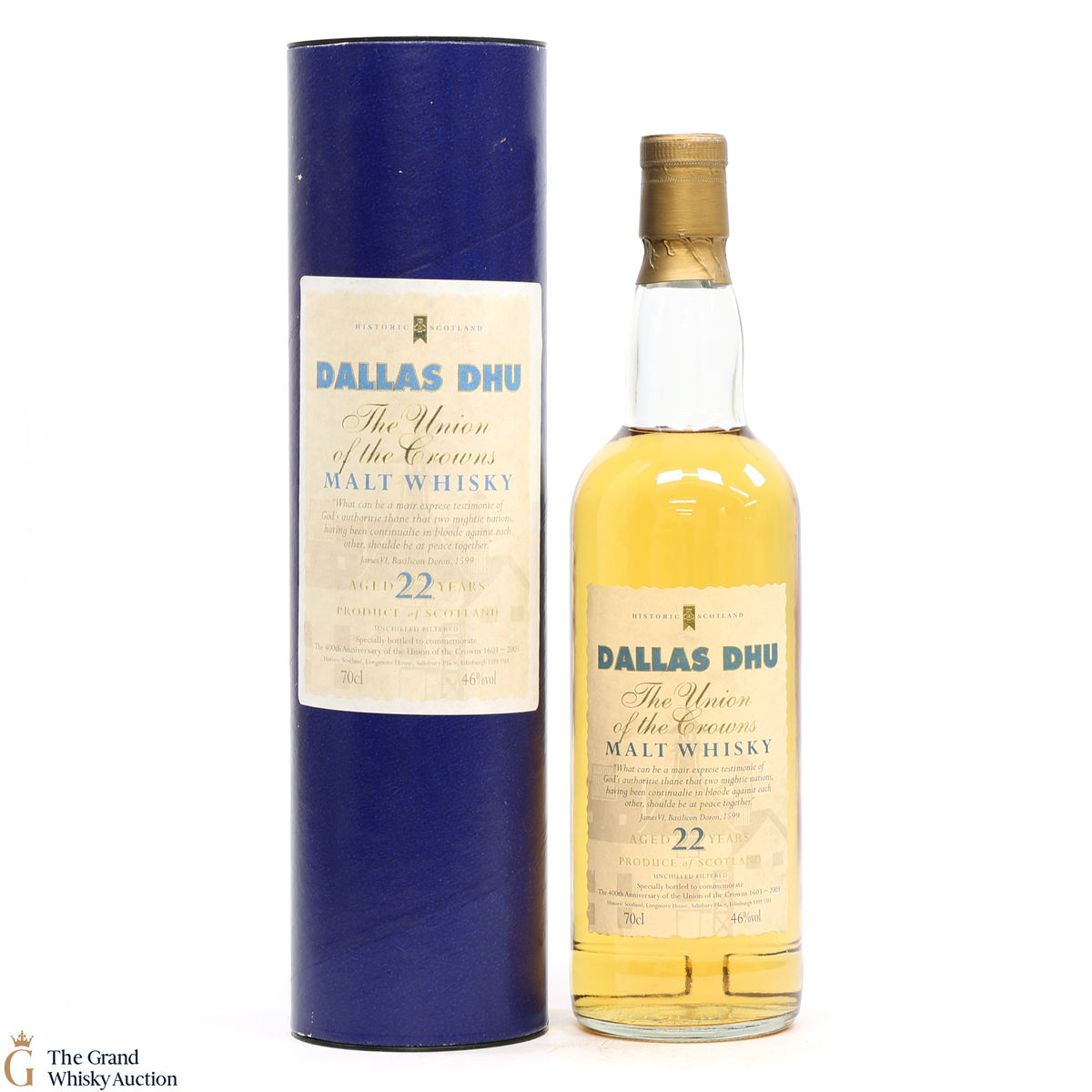 This Dallas Dhu was bottled by Historic Scotland in 2003, to mark the 400th Anniversary of the Union of the Crowns in 1603 when the succession of James VI, King of Scots, to the throne of England uniting both countries under one Monarch.