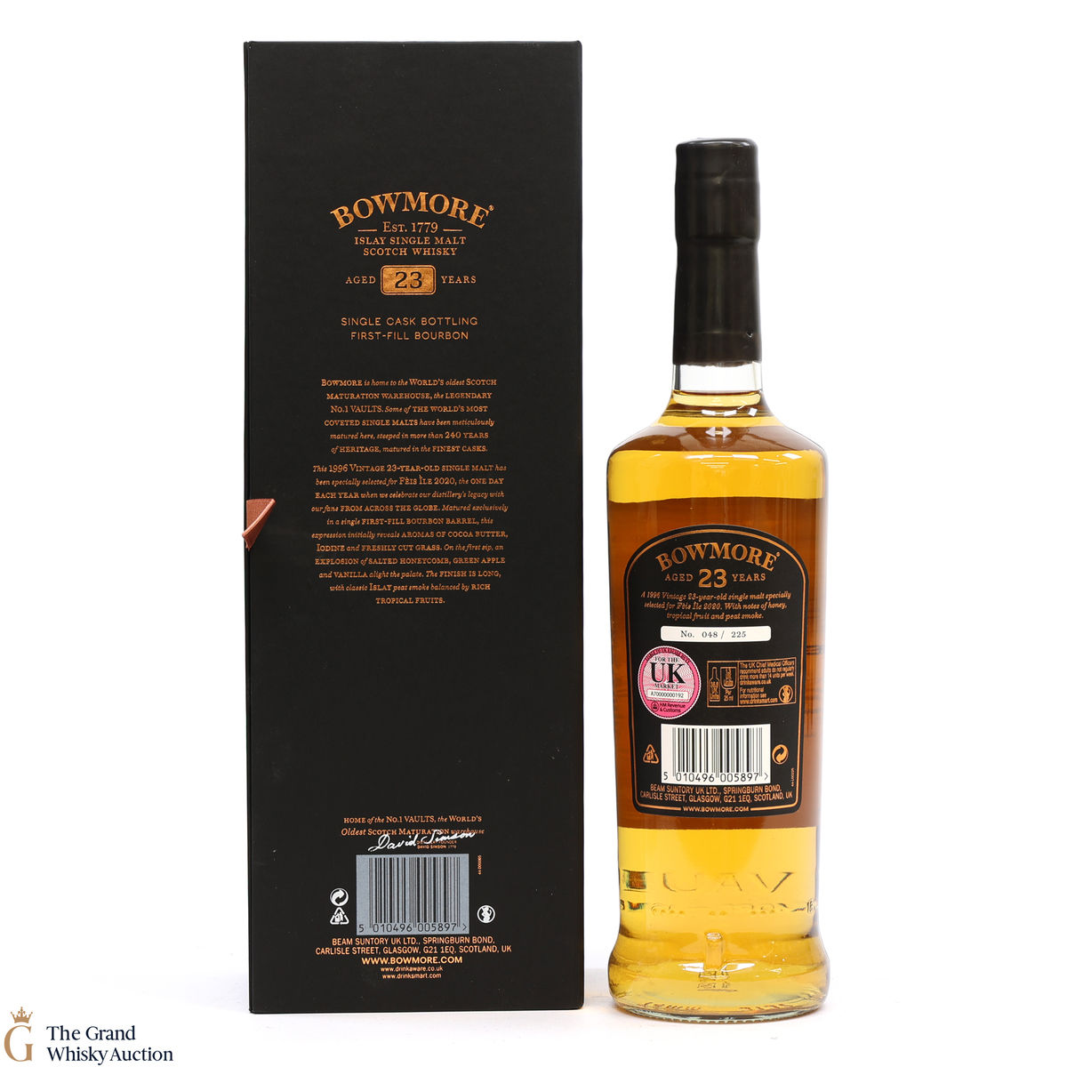 Distilled at Bowmore Distillery in 1996, this single malt was matured exclusively in a single first fill bourbon barrel for 23 years. Bottled to celebrate one of the biggest whisky events of the year, Feis Ile, this bottling was originally intended to be released for the 2020 festival before the event was canceled. An incredibly rare whisky, only 225 bottles were produced.