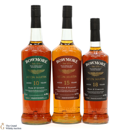 Bowmore - 15 Year Old - Aston Martin Edition 8 (1L): Edition 8 of the Bowmore x Aston Martin collaboration celebrates the iconic Aston Martin 1958 DB4. Arguably one of the most perfect and purest interpretations of design of its time. This single malt was married in 1st fill Bourbon casks to create a refreshingly, silky peat-smoked character with notes of citrus. 43% ABV