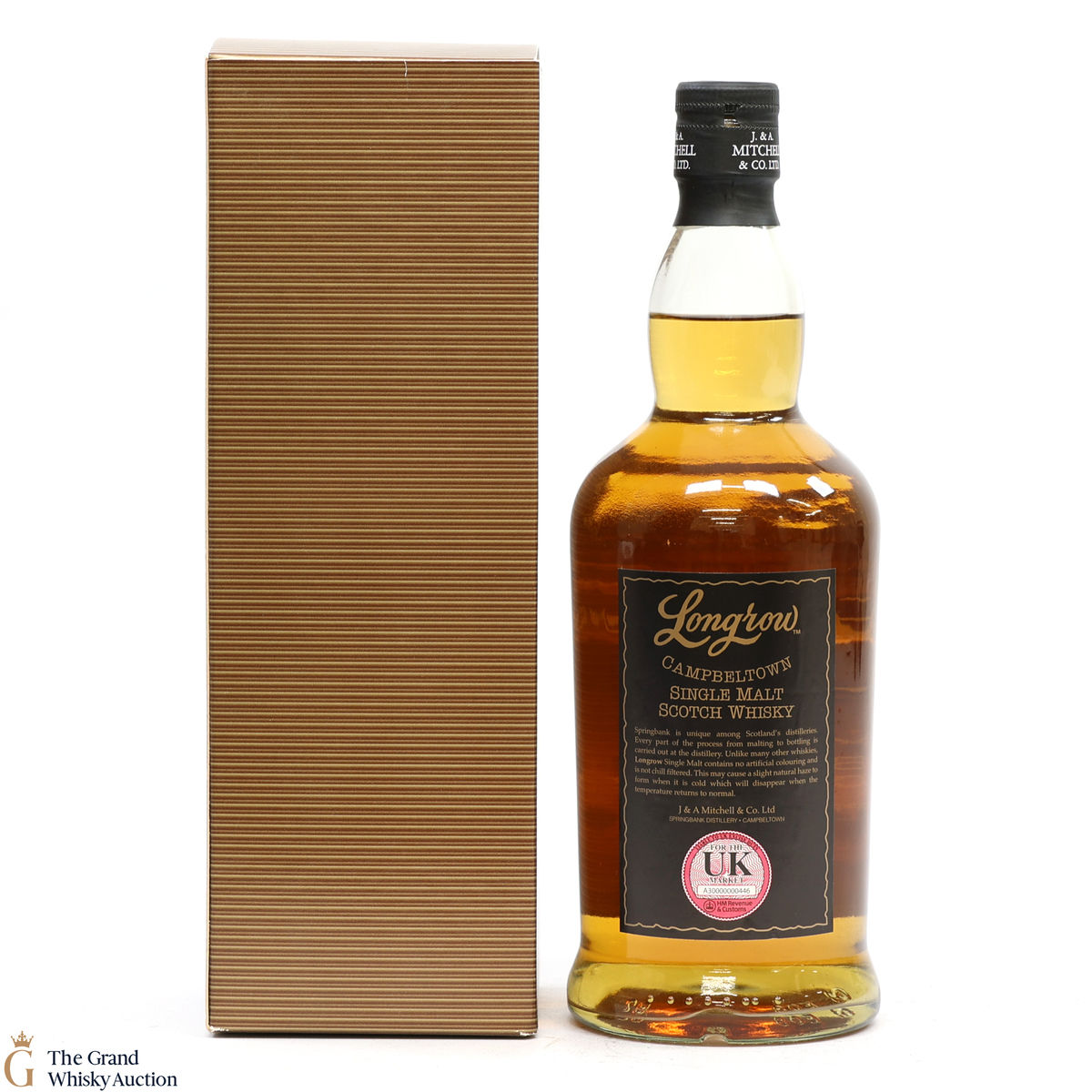 A bottle of Longrow CV which used to be Longrow's entry-level whisky. Longrow is Springbank's heavily peated whisky - this is a no-age statement expression. It was named Best Peated Malt at the 2010 Malt Maniacs Awards.