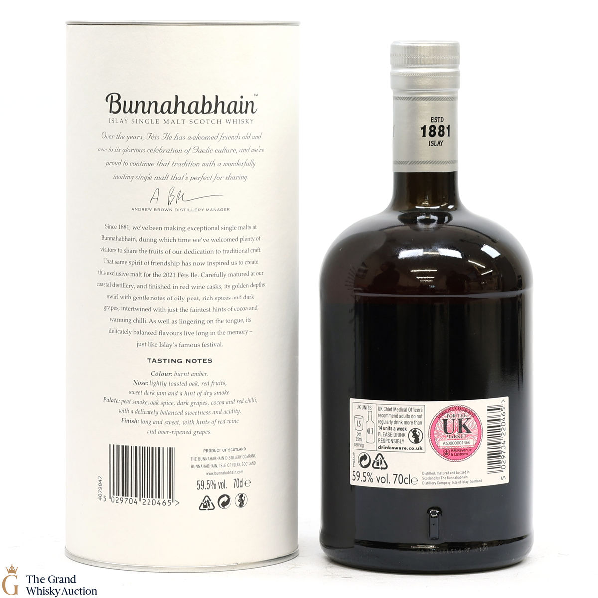 Bunnahabhain's first release for Feis Ile 2021 is this limited-edition smoky whisky. Distilled on the 10th of October 2013, this single malt was finished in Moine Bordeaux casks which gives the Bunnahabhain a delicately balanced flavour. Bottled on the 25th of November 2020, this is one of only 5166 bottles produced.
