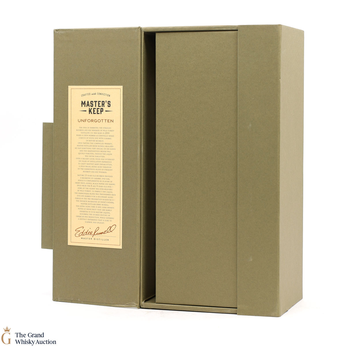 Wild Turkey Master’s Keep Unforgotten, the newest release in the annual limited-edition series, was inspired by a fortuitous and unexpected co-mingling of young rye and mature bourbon released more than a decade ago. Master Distiller Eddie Russell has resurrected the memory of that release (Wild Turkey Forgiven) with the release of Master’s Keep Unforgotten, a high-proof, extra-aged variation of the harmonious blend of straight bourbon and rye whiskies. The unconventional and complex liquid serves as a testimony to Eddie’s experience and the legacy of Wild Turkey as one of the few Kentucky distilleries that have remained dedicated to the art of making rye whiskey, alongside its renowned bourbons.