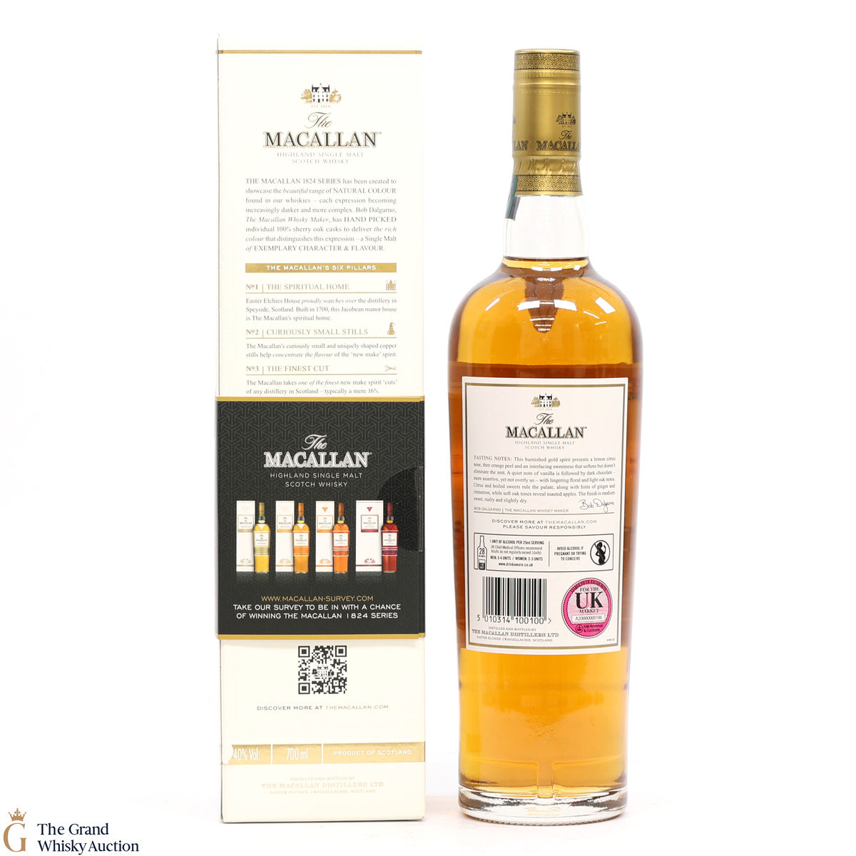 Macallan Gold was released in late 2012 as part of a series of colour-themed bottlings introduced to replace the distillery's age-statement expressions. Produced from 9-15yo first fill and refill sherry casks, it was designed to sit between the now-defunct 10yo Sherry Oak and 10yo Fine Oak bottlings.