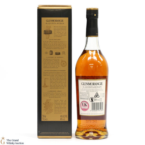 Glenmorangie Quinta Ruban is matured in bourbon casks before finishing in the finest Ruby Port casks from the "Quintas" or wine estates of Portugal. Ruban is Gaelic for Ruby.