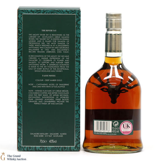 The Tay dram was aged in bourbon and Oloroso sherry casks. When originally released, Dalmore donated £4 from every bottle sold to the Tay Foundation.