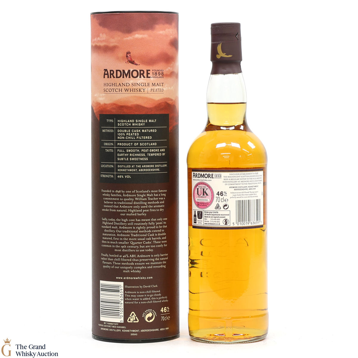 Ardmore Traditional Cask is a double cask matured whisky. It was aged in bourbon barrels. The final maturation was in quarter casks to help enrich the whisky due to the smaller size of the cask type. It is a lightly smokey and rich Highland whisky. The 2007 release of this 'Traditional Cask' was the first official single malt from the Ardmore distillery, this is a young whisky, but it was aged in quarter casks.
