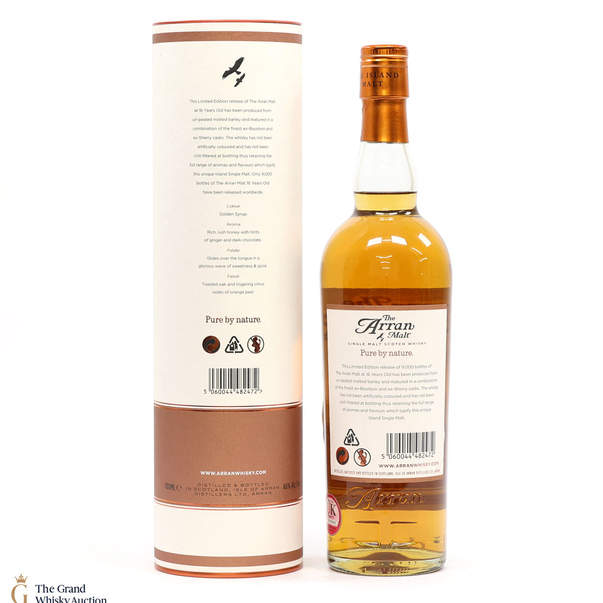 Distilled at the Arran Distillery, this limited edition unpeated single malt was matured for 16 years in a combination of ex-bourbon and ex-sherry casks.