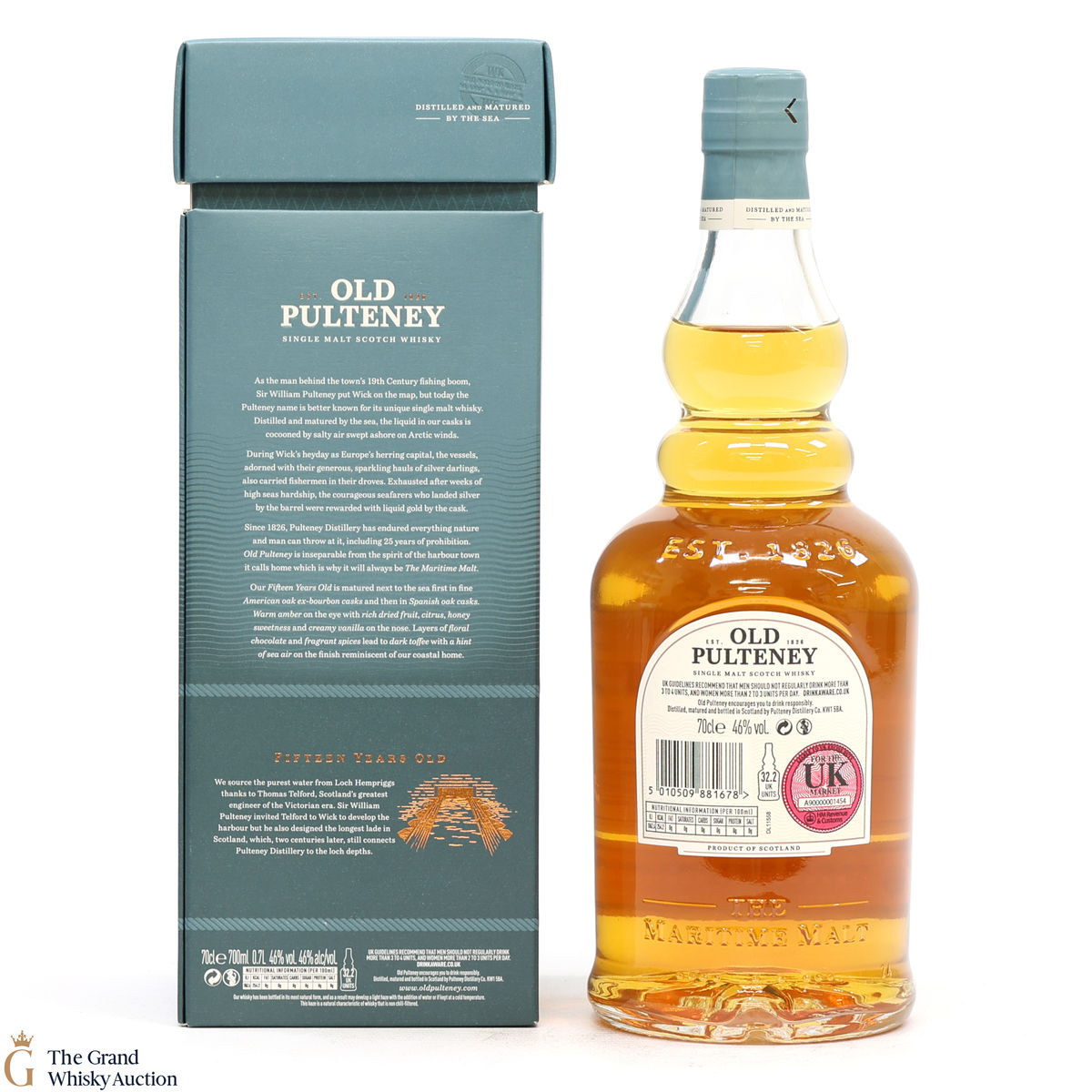 Old Pulteney 15 Year Old, launched in 2018 at the same time as Huddart, 12 Year Old and 18 Year Old. Lingering sea tastes with a sweetness.