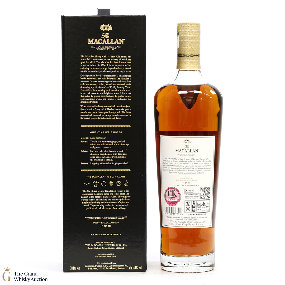 This annual release of The Macallan's popular 18-year-old Sherry Oak is matured exclusively in sherry-seasoned casks, built from both Spanish and American oak, providing a beautifully dark flavour with rich aromas.