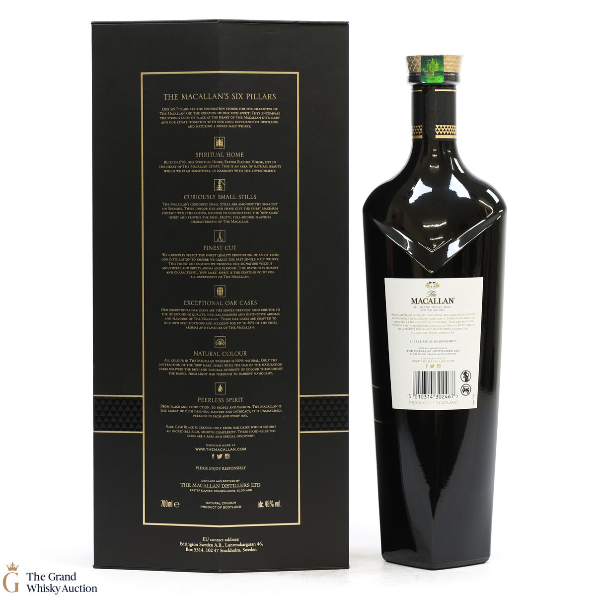 The Macallan Rare Cask Black Limited Edition was released to celebrate the opening of the new Macallan Distillery. It is part of the Macallan 1824 series and features stunning photography by Paolo Pellegrin and a bespoke flask from the Distillery Visitor Centre. The release was a limited edition of 7000 sets, which were only available at airports.