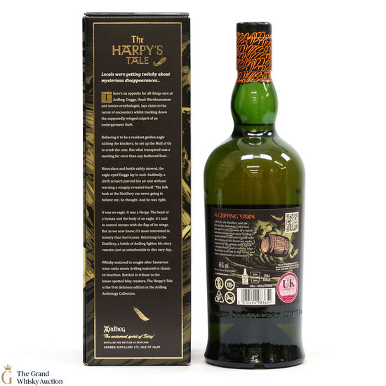 Inspired by the seldom-seen Harpy who was a winged beast said to inhabit Islay. This edition is a first for the Distillery. The Harpy’s Tale has been matured for 13 years in rare Sauternes wine casks and married with classic Ardbeg ex-bourbon.