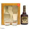 This gift pack contains an old bottle of 12-year-old Bowmore and a pair of glasses.