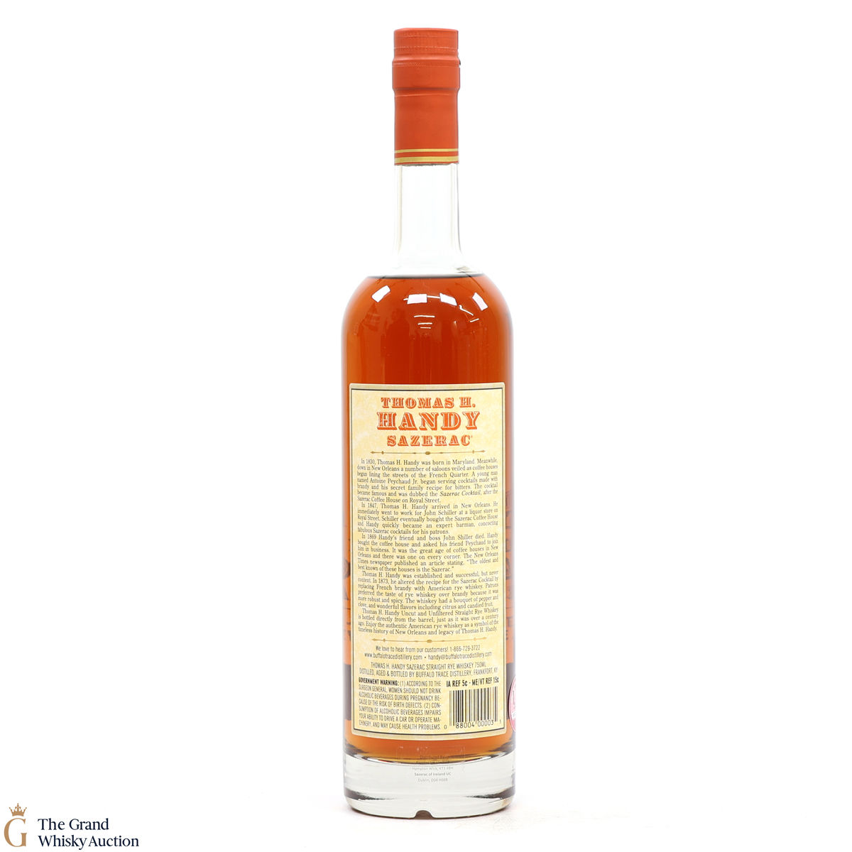 This collection is dubbed the antique collection and celebrates famous figures. The company's founder, Thomas H. Handy, is on the front of this bottle with the picture of the Sazerac Coffee House where everything started.