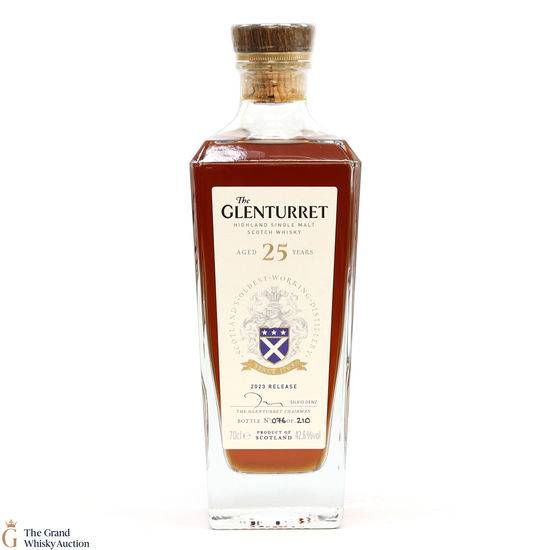 The Glenturret 25 Years Old is a limited expression created from six casks, each with a very different character. Stowed in Glenturret's traditional Dunnage warehouses for a quarter of a century. European oak brings rich fruit, aromatic spices and oak notes, American oak adds sweetness and vanilla with refill casks offering touches of citrus.