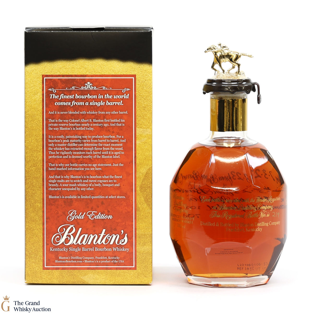PLEASE NOTE: The wax seal on Blanton's bottles are prone to cracking in transit due to their design. Therefore, as stated in our T&C’s, we do not and will not accept liability should the seal be breached, broken, split or leak in transit. Additionally, please know due to the design of the internal cardboard packaging that surrounds the top of the bottles, it too may be torn. By bidding on this lot you have understood this to be true. Insurance is for complete breakage or loss in transit only.