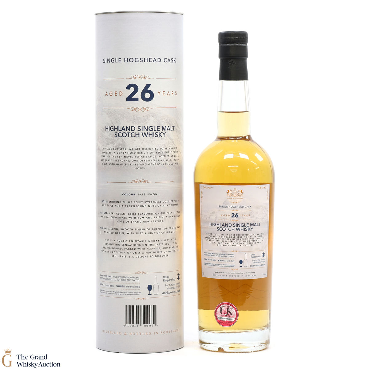 Due to the various ages of bottles and their seals, the condition of liquid is at the buyer's discretion and no claim can be lodged against failure/leakage in transit. Loss and breakage cover is available at 3% of the hammer price as standard. If the lot is not insured, no claim can be lodged against the courier or The Grand Whisky Auction for breakage or loss in transit.