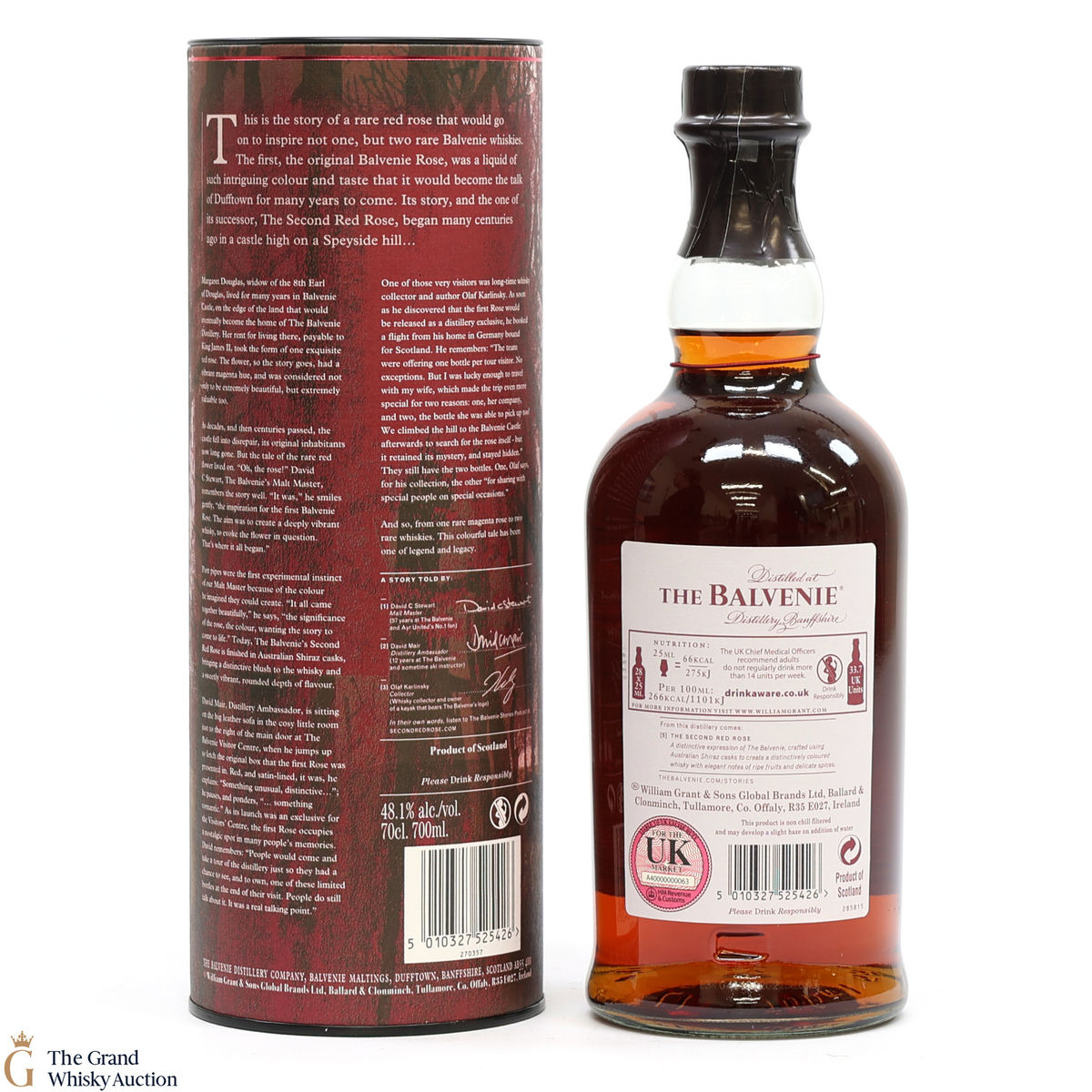Inspired by the history of Balvenie Castle, this single malt was matured for a total of 21 years, being finished in Australian Shiraz Casks. The story of David C Stewart has created two extraordinary red roses, this is the second red rose and story number 5 in the series. Bottled at 48.1% ABV.