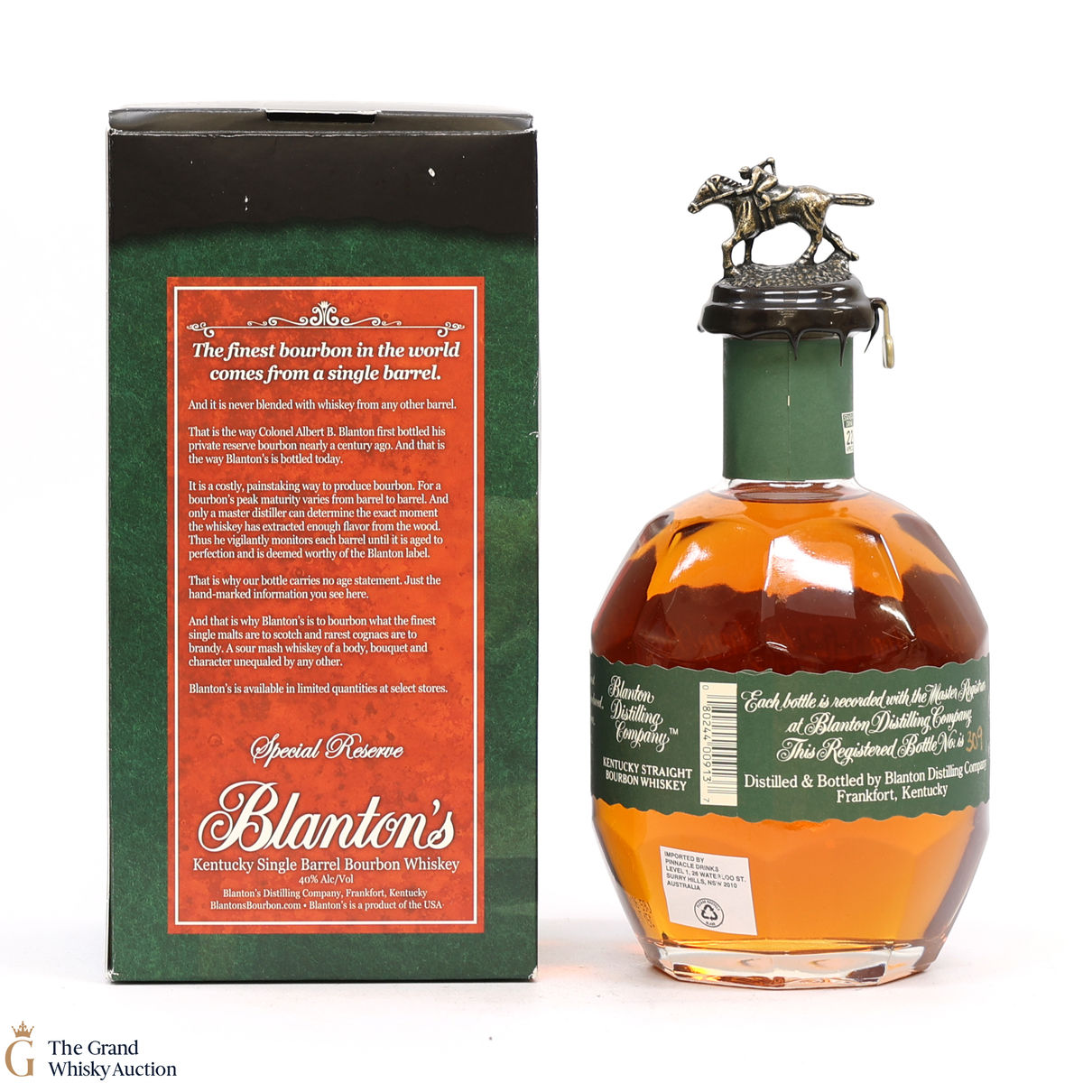 Blanton's single barrel is never blended with whiskey from any other barrel. This is the same way Colonel Albert B. Blanton first bottled his private reserve bourbon nearly a century ago. The bourbon carries no age statements, just the hand-marked information that you can see on the bottle labels.