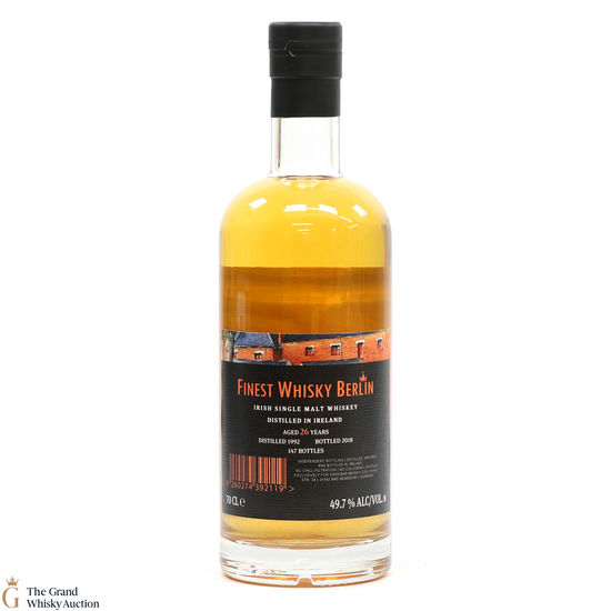 An undisclosed 1992 single malt whiskey from an Irish distillery. Matured for 26 years then bottled in 2018 by Sansibar for Finest Whisky Berlin. One of only 147 bottles released. Sansibar Whisky is a German independent bottler, specialising in Scotch, Japanese whisky and rum.
