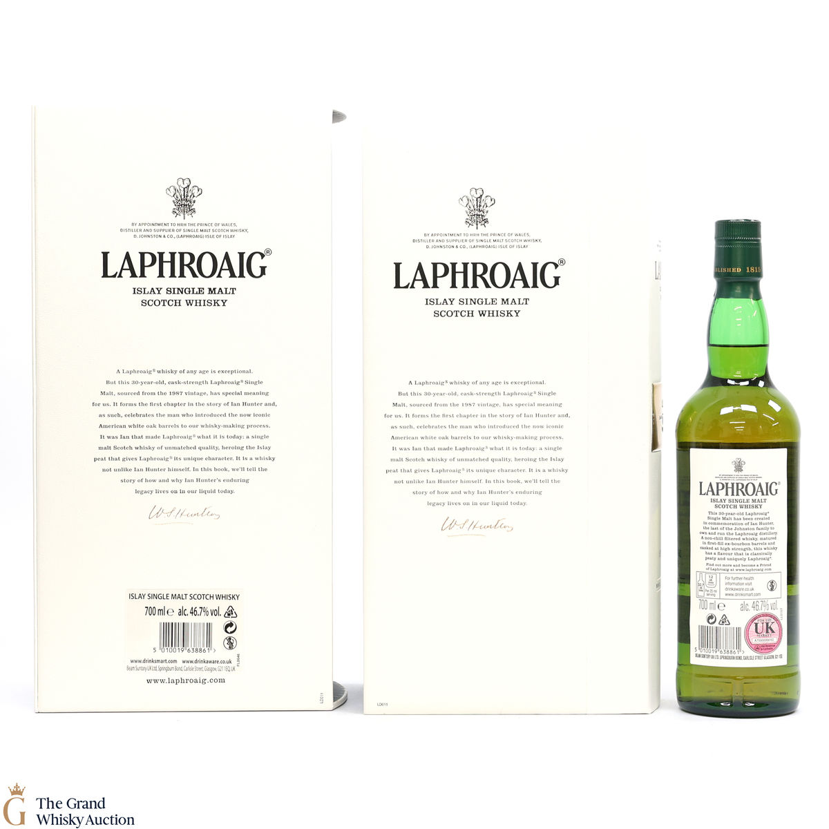 This is a 30 year old cask strength bottling from the 1987 vintage. This bottle forms the first chapter to the story of Ian Hunter and celebrates the man who introduced the iconic American white Oak barrels to the whisky making at Laphroaig. It is said that it was Ian who made Laphroaig what it is today.