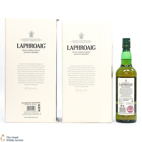 This is a 33 year old single malt, distilled in 1987 and matured in ex-bourbon barrels. This bottle forms the third chapter "Source Protector" to the story of Ian Hunter and celebrates the man who introduced the iconic American white Oak barrels to the whisky making at Laphroaig. It is said that it was Ian who made Laphroaig what it is today.