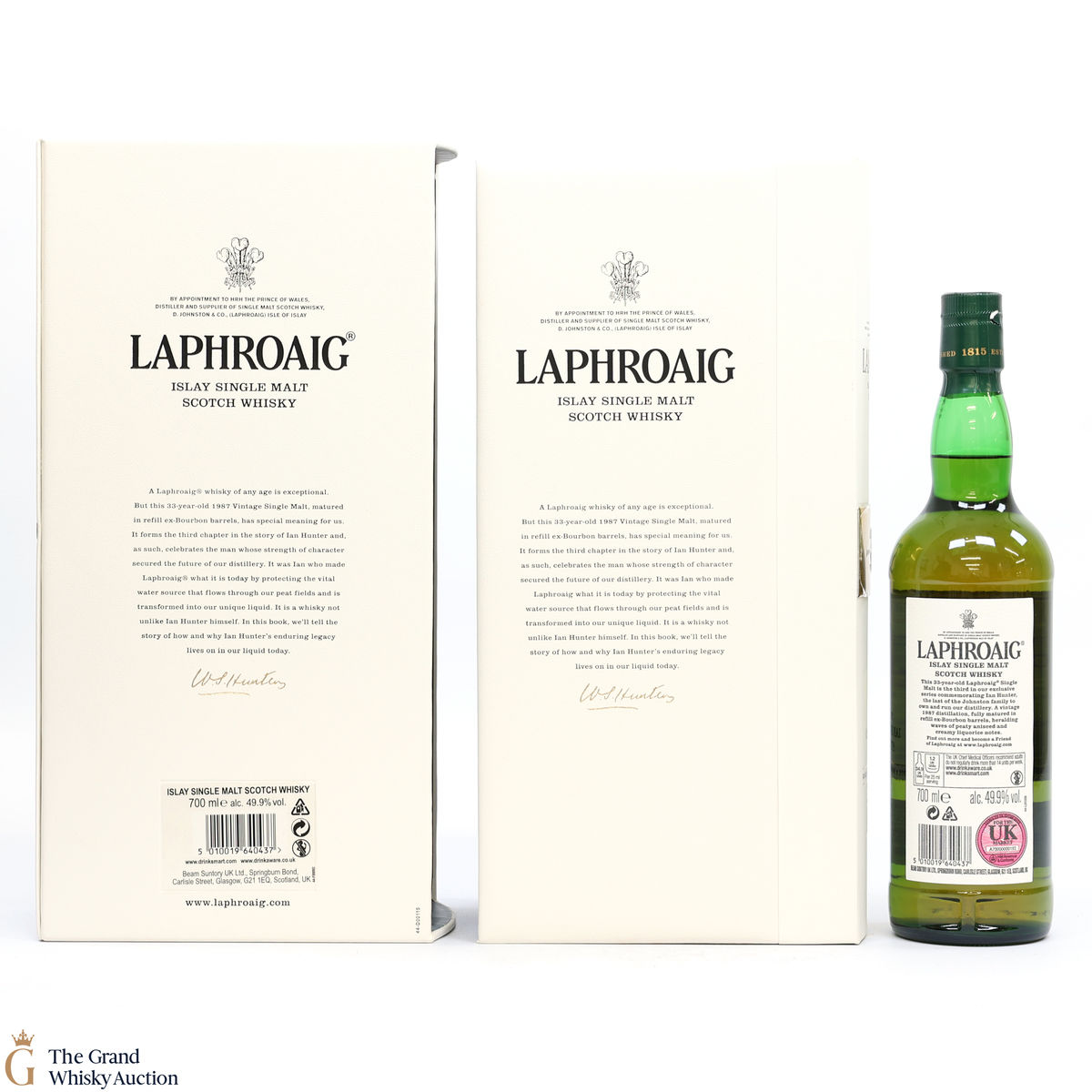 This is a 33 year old single malt, distilled in 1987 and matured in ex-bourbon barrels. This bottle forms the third chapter "Source Protector" to the story of Ian Hunter and celebrates the man who introduced the iconic American white Oak barrels to the whisky making at Laphroaig. It is said that it was Ian who made Laphroaig what it is today.