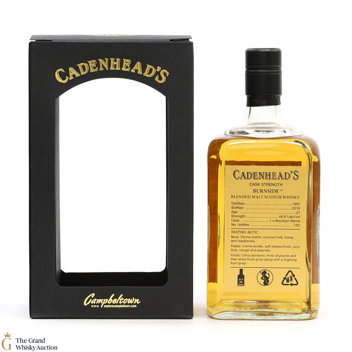 This is a 27-Year-Old single-cask Burnside. This is one of only 162 bottles produced, bottled at the cask strength of 44.8% in 2019.