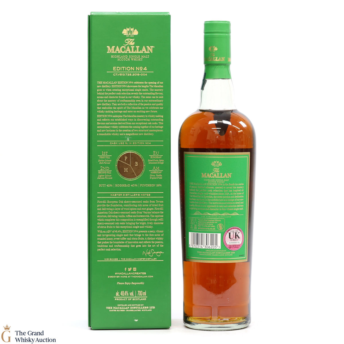 The fourth release in the Edition Series from The Macallan, this Speyside single malt is a celebration of the distillery's whisky making heritage, combining a unique selection of oak cask styles. Edition No.4 reflects the craftsmanship and pioneering design of the new Macallan distillery.