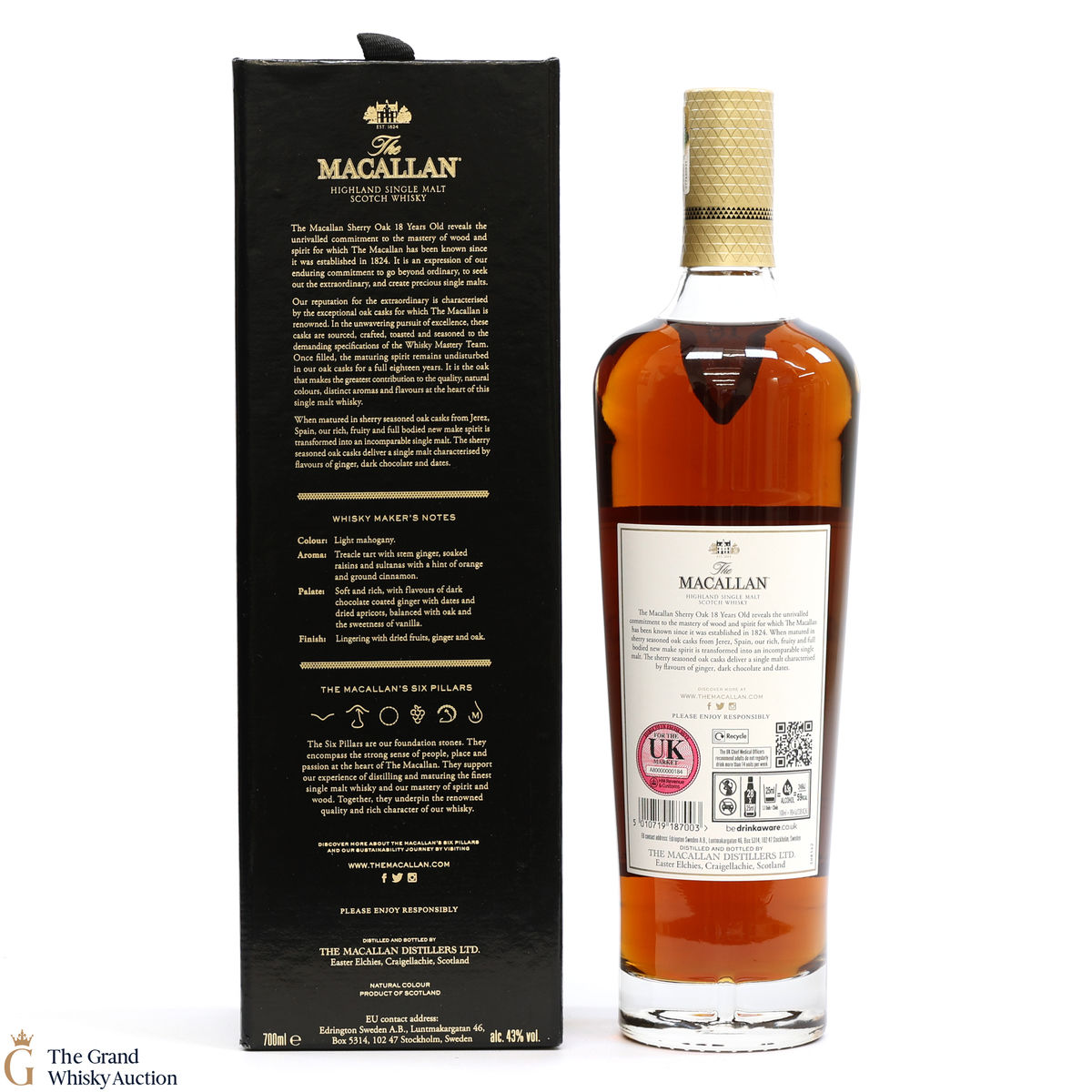This annual release of The Macallan's popular 18-year-old Sherry Oak is matured exclusively in sherry-seasoned casks, built from both Spanish and American oak, providing a beautifully dark flavour with rich aromas.