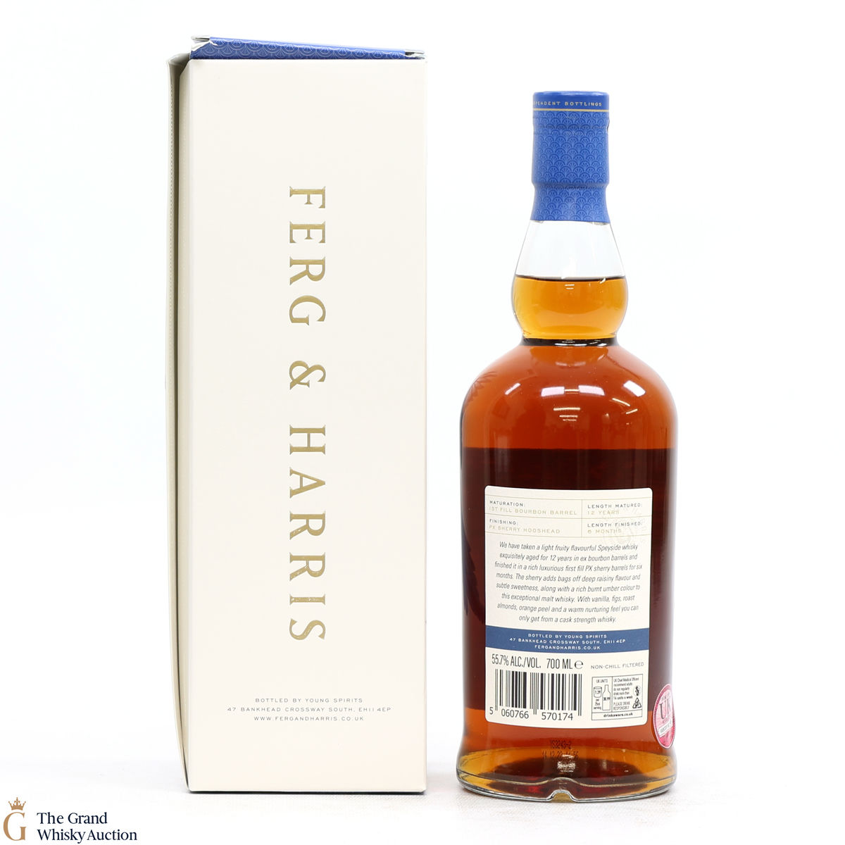 This Speyside single malt was matured for 12 years in first-fill bourbon barrels before being finished for six months in Pedro Ximenez sherry casks. 2,873 bottles were bottled at 55.7% ABV by independent bottlers Ferg & Harris.