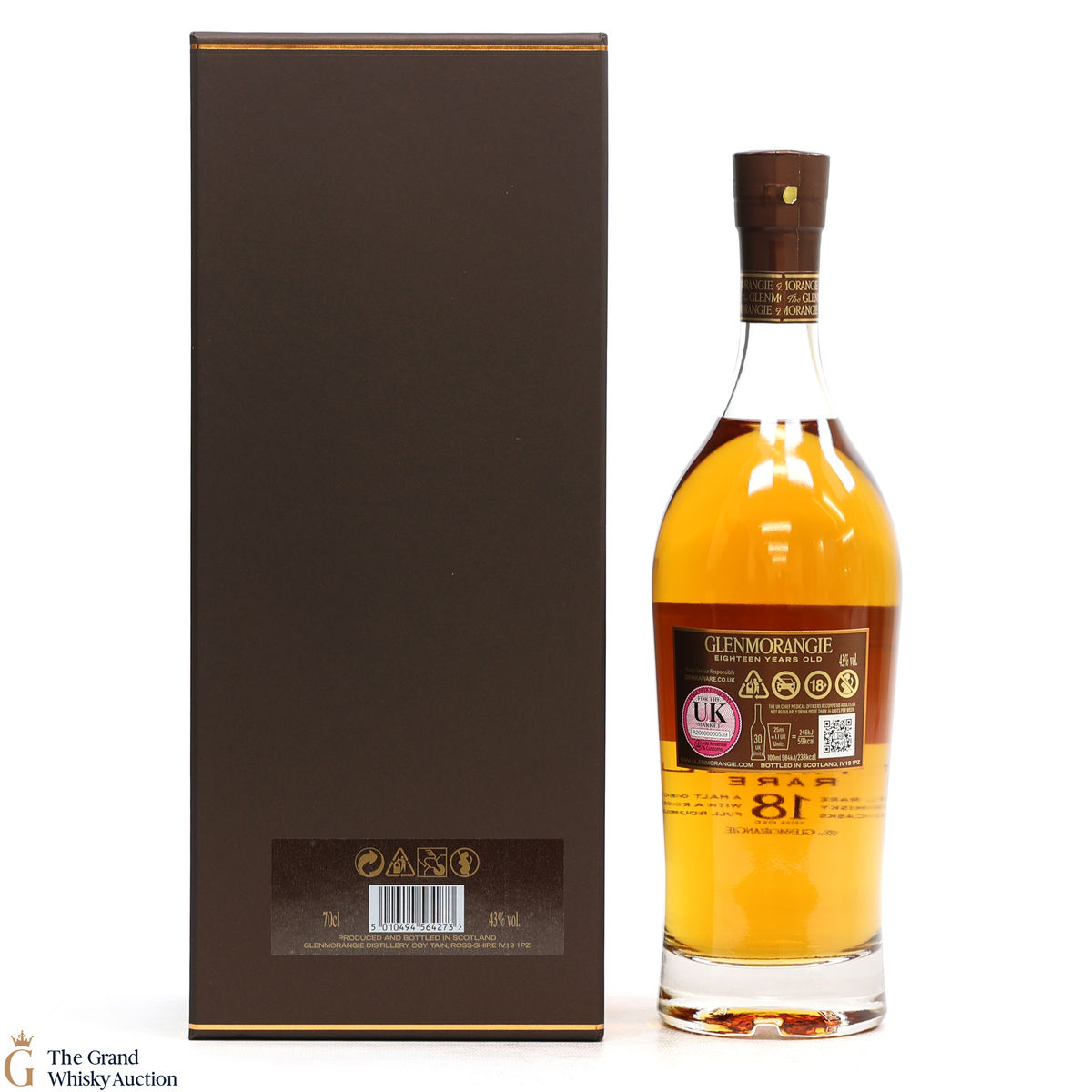 This bottle is an 18-year-old Extremely Rare, Highland single malt produced by Glenmorangie. It has been perfected by the sixteen men of Tain who have specially aged this bottle for 18 years in superior oak casks.