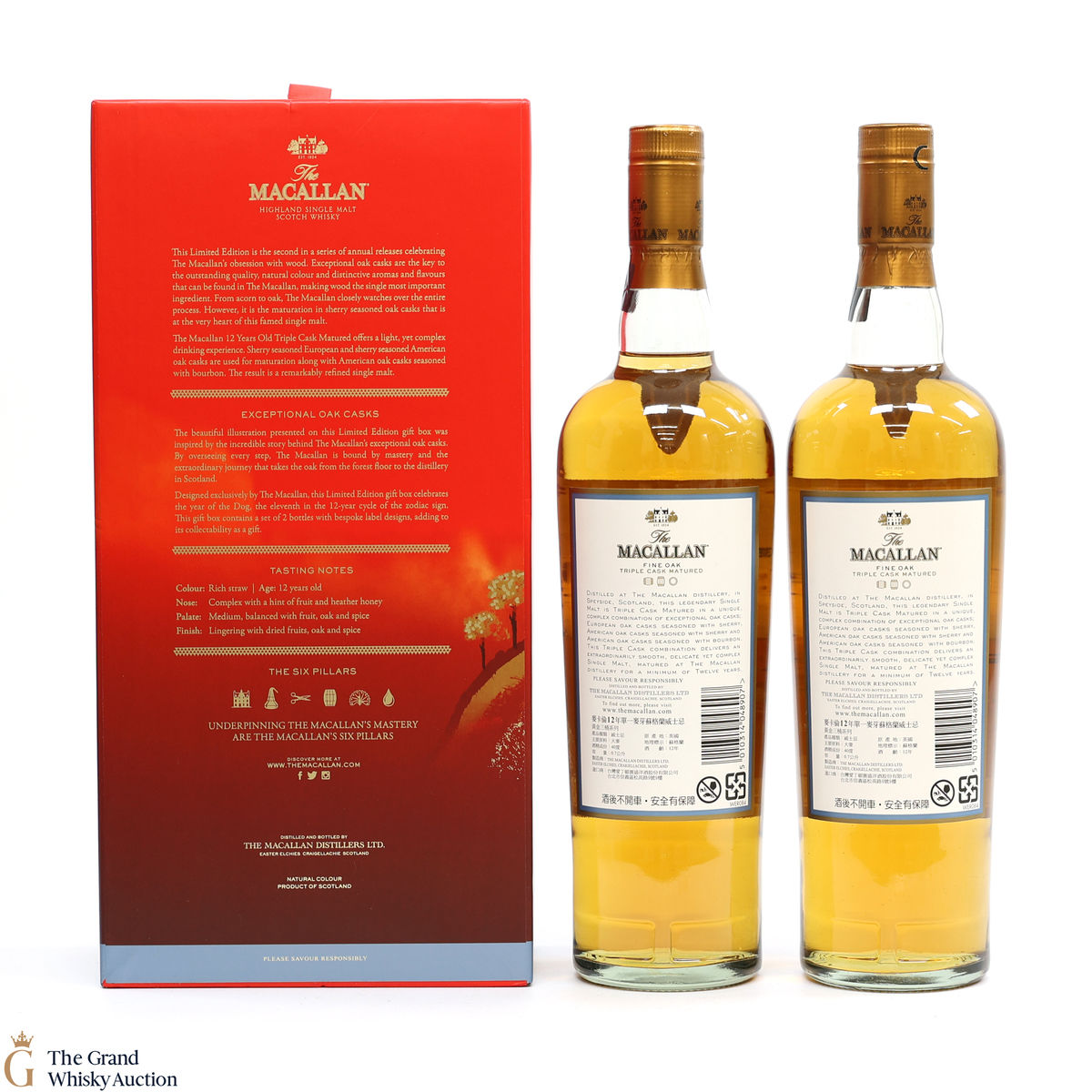 With bespoke label designs, this is an eye-catching limited-edition release twin pack containing 2 x 70cl bottles of The Macallan 12-year-old Double Cask single malt whisky.