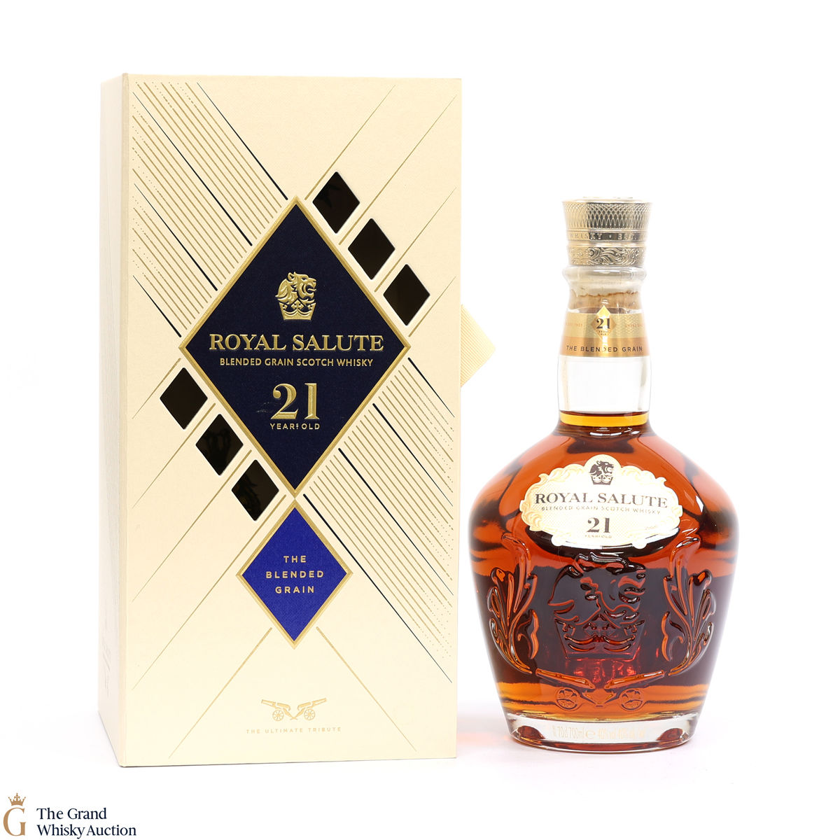 This Royal Salute 21-Year-Old is a blended grain whisky. Bottled at 40% ABV. This is the first Royal Salute to be bottled in a fully transparent flagon.