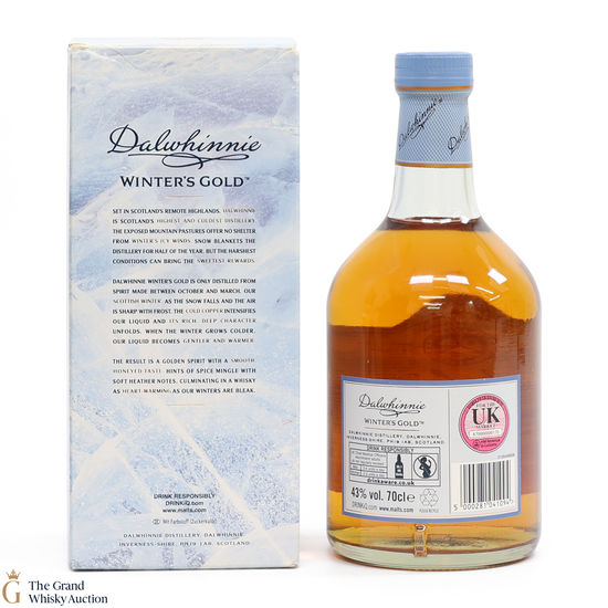 Dalwhinnie Winter's Gold was introduced in 2015 inspired by its location in the Highlands of Scotland, making it one of the highest and coldest distilleries - "Crafted by the Cold". It is made exclusively with the spirit that has been distilled between October and March.