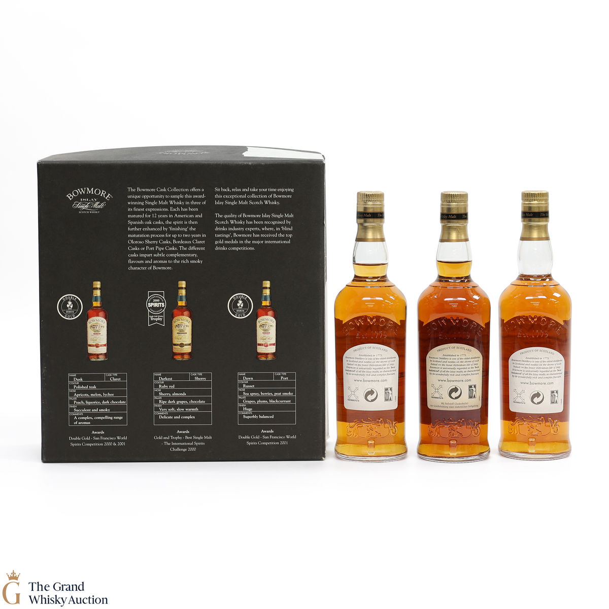 This set includes 3 x 20cl Bowmore Cask Collection bottlings. It is an excellent opportunity to sample three award-winning, discontinued single malt whiskies.