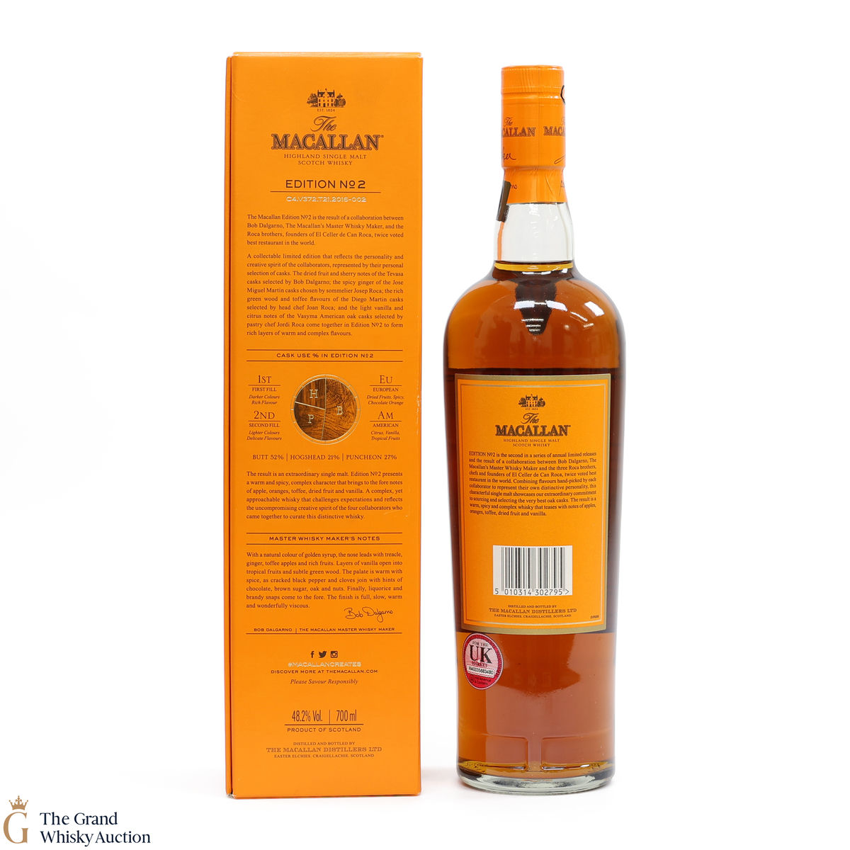 This is the second release from the Macallan Edition series. Edition No.2 is a collaboration between Macallan's master blender Bob Delgarno and legendary Spanish chefs Joan, Josep and Jordi Roca. The Rocas are the three brothers behind El Celler de Can Roca (named Best Restaurant in the World twice by Restaurant magazine). This single malt was drawn from a combination of sherry puncheons, butts and refill hogsheads.