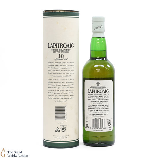 A 70cl of the medicinal 10-year-old from Islay's bestselling distillery, Laphroaig. In making Laphroaig, malted barley is dried over a peat fire. The smoke from this peat, found only on Islay, gives Laphroaig its particularly rich flavour.