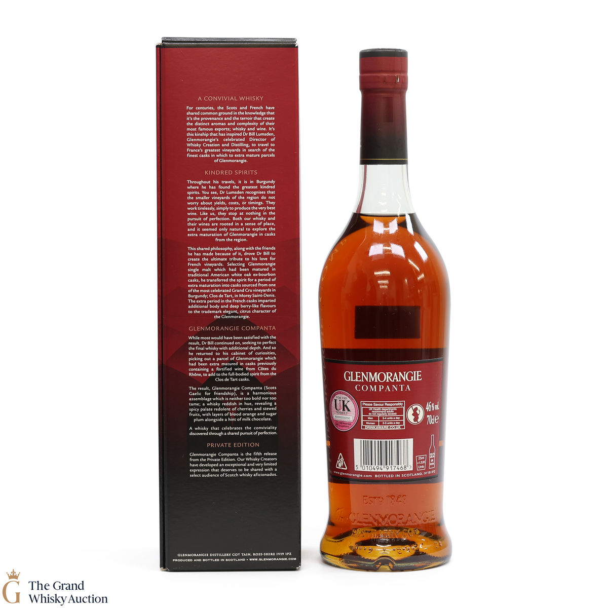After first maturing in American white oak ex-bourbon barrels, the Companta was matured in 60% Burgundy wine casks from Clos de Tart and 40% Rhône Valley casks that previously held Rasteau, sourced by Glenmorangie's Director of Distilling, Dr. Bill Lumsden.