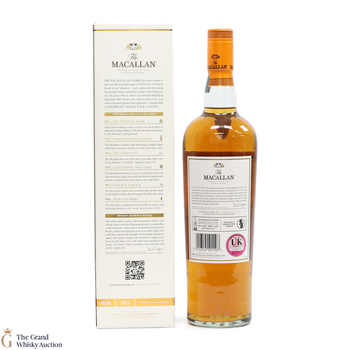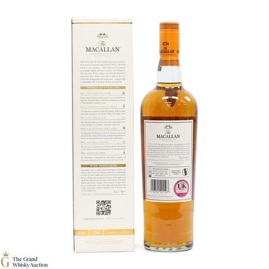 The Macallan Amber forms part of The Macallan 1824 Series which exemplifies their commitment to 100% natural colour, present in each and every Macallan single malt. This non-age statement range of Speyside single malts concentrates on colour; the theory is that by using 100% sherry casks and natural colour, the darker the whisky, the older and more complex.