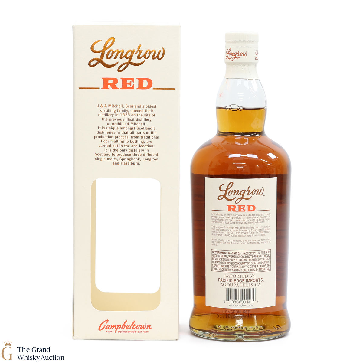 This 10-year-old Longrow Red is a limited edition from Springbank Distillery in Campbeltown. This single malt was matured for 7 years in a bourbon barrel followed by 3 years in refill Malbec barriques from De Torsen Private Cellar in Stellenbosch, South Africa. It is the ninth Longrow Red release and this is one of only 10,000 bottles.