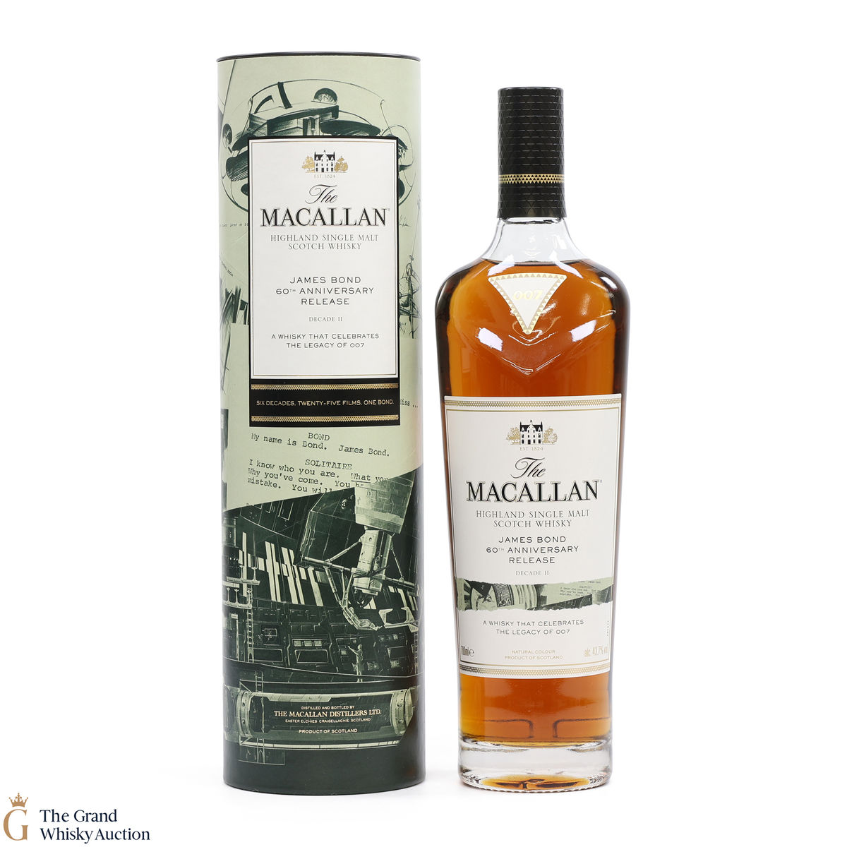 The remarkable James Bond 60th Anniversary Release is a celebration of 007 and The Macallan as modern innovators linked by their Scottish heritage. Each bottle’s packaging features an original illustrative design and colour to denote the decade it represents.