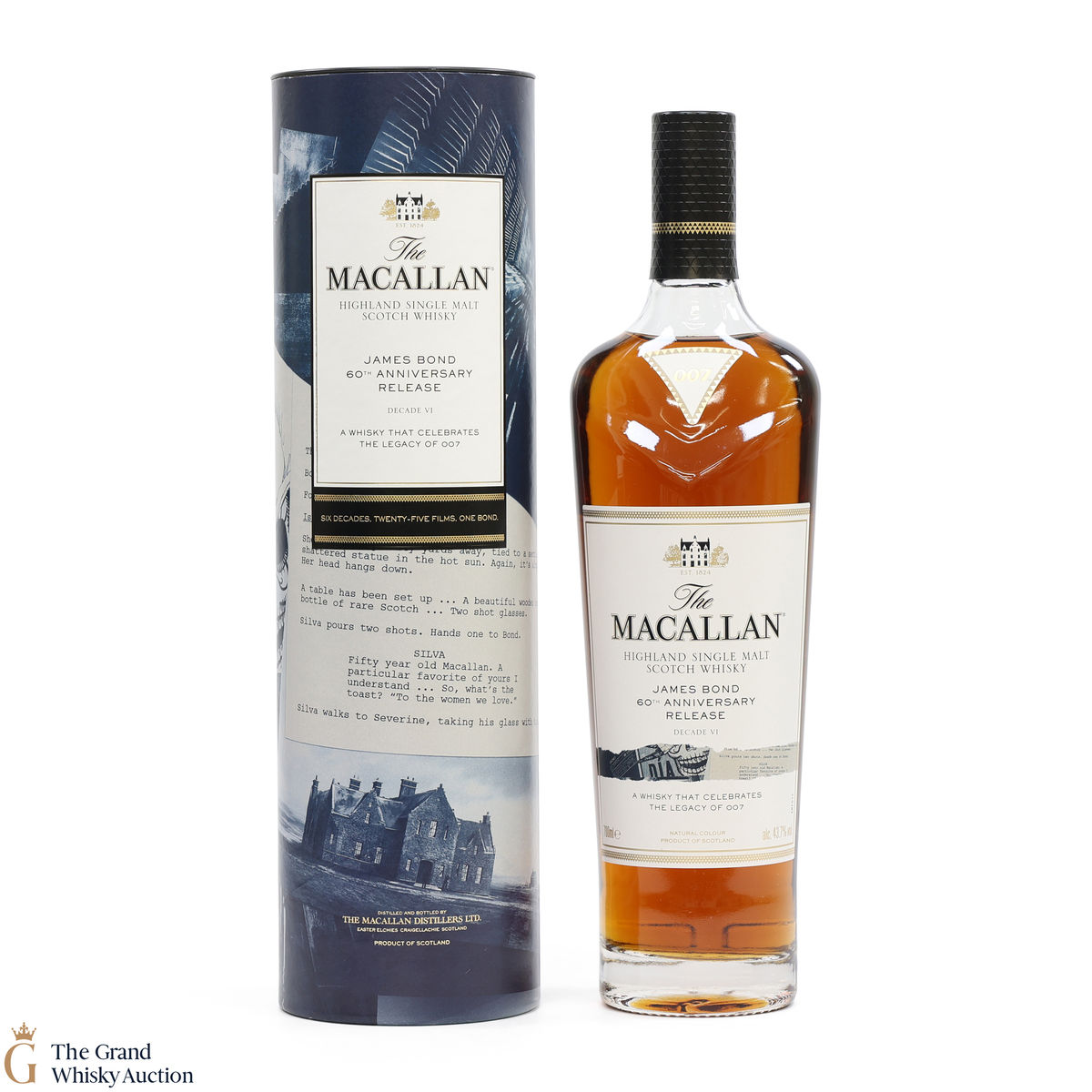The remarkable James Bond 60th Anniversary Release is a celebration of 007 and The Macallan as modern innovators linked by their Scottish heritage. Each bottle’s packaging features an original illustrative design and colour to denote the decade it represents.