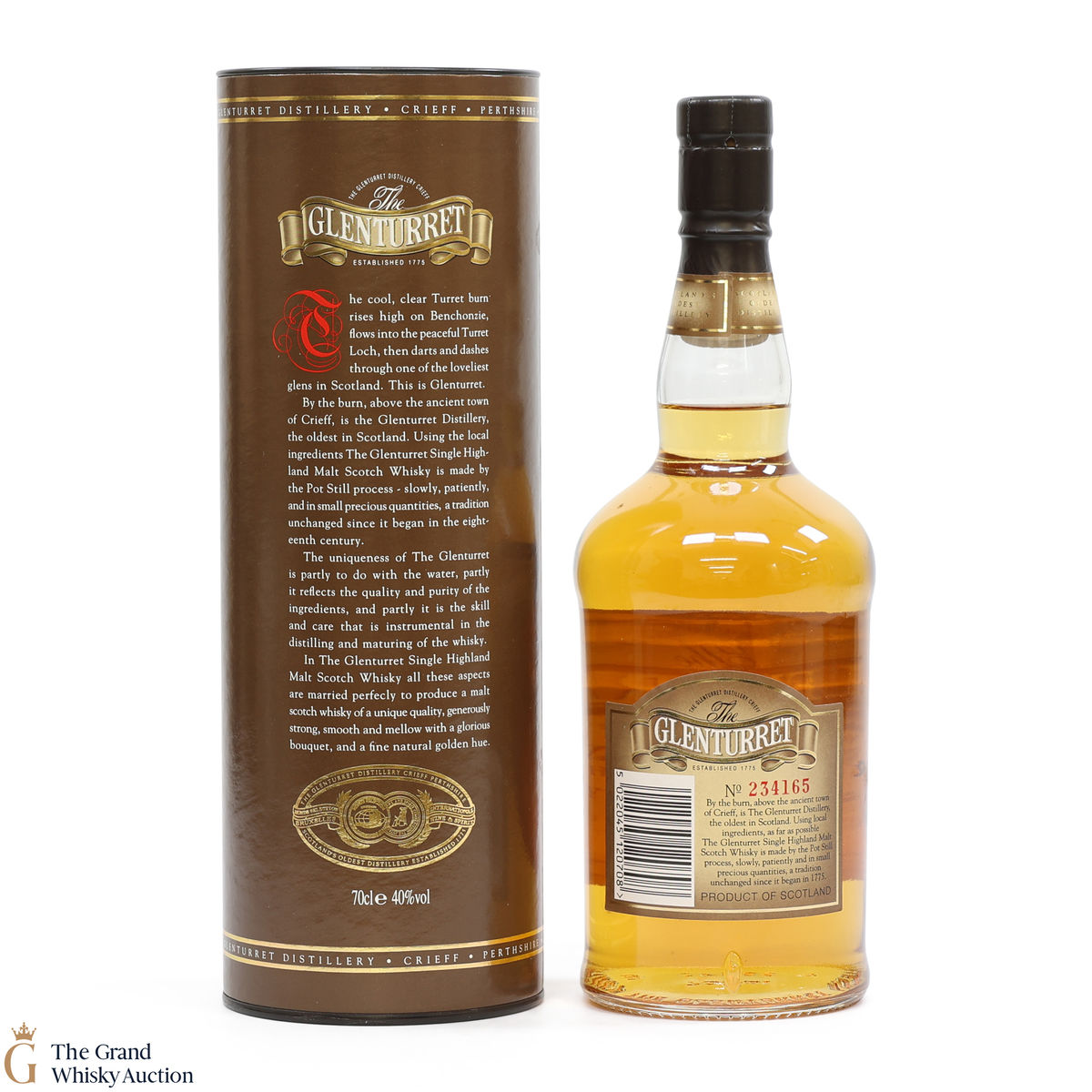 Due to the various ages of bottles and their seals, the condition of liquid is at the buyer's discretion and no claim can be lodged against failure/leakage in transit. Loss and breakage cover is available at 3% of the hammer price as standard. If the lot is not insured, no claim can be lodged against the courier or The Grand Whisky Auction for breakage or loss in transit.
