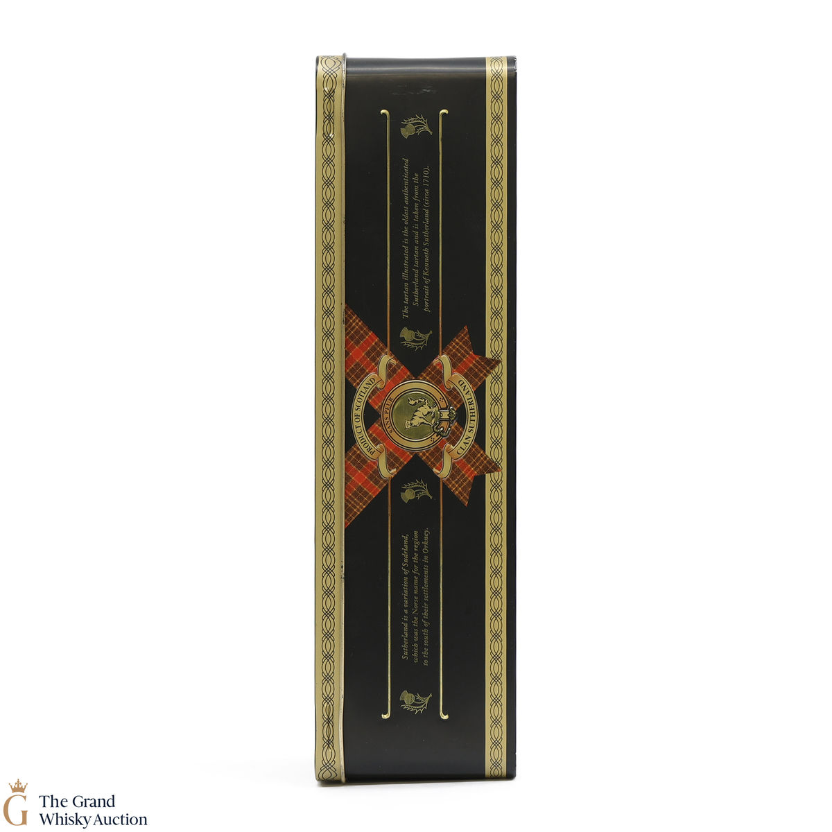 A Glenfiddich Clans of the Highlands bottling from around the 1990s which celebrates one of seven of Scotland's most powerful clans. This release celebrates the history of Clan Sutherland. The tin features a painting of Kenneth Sutherland, 3rd Lord Duffus.